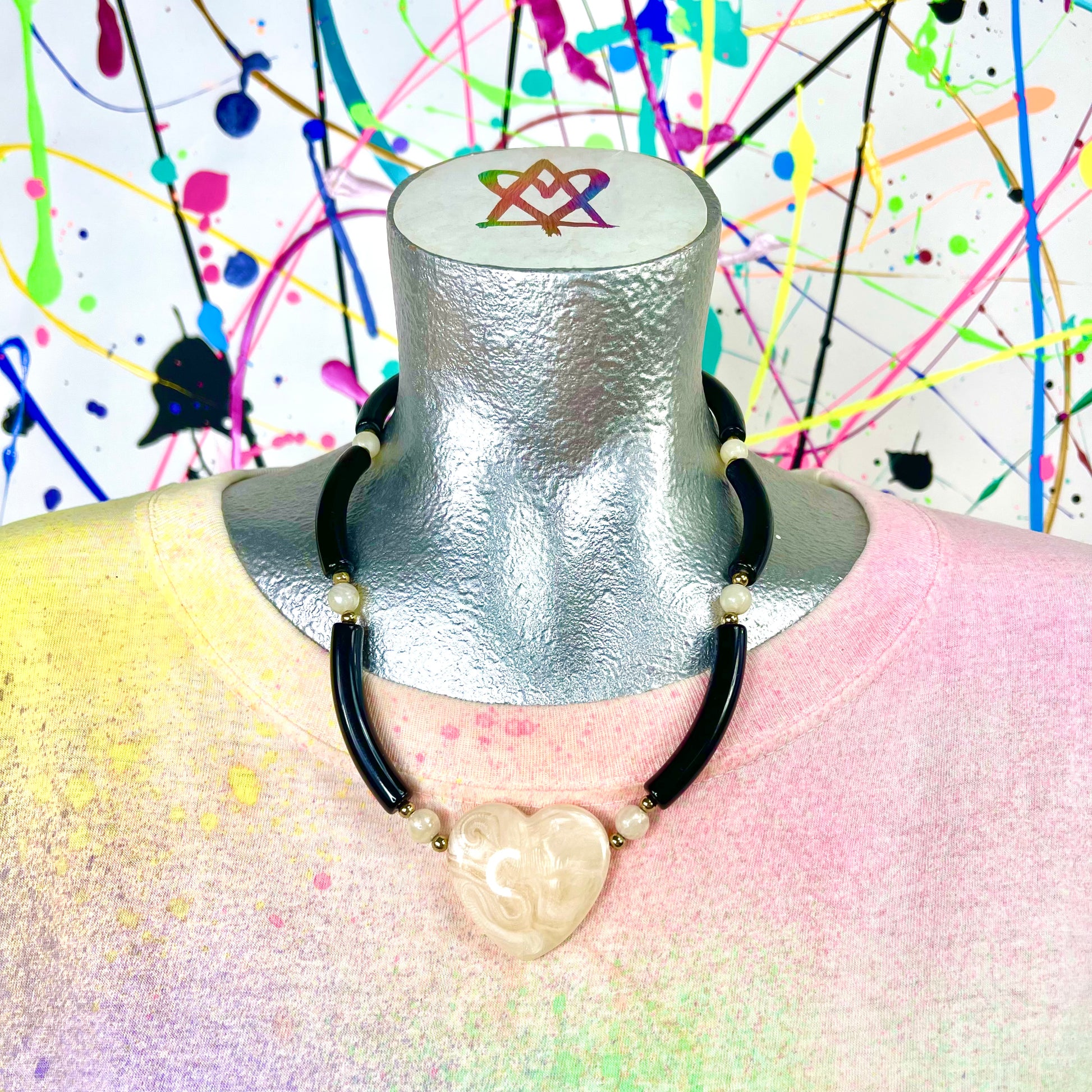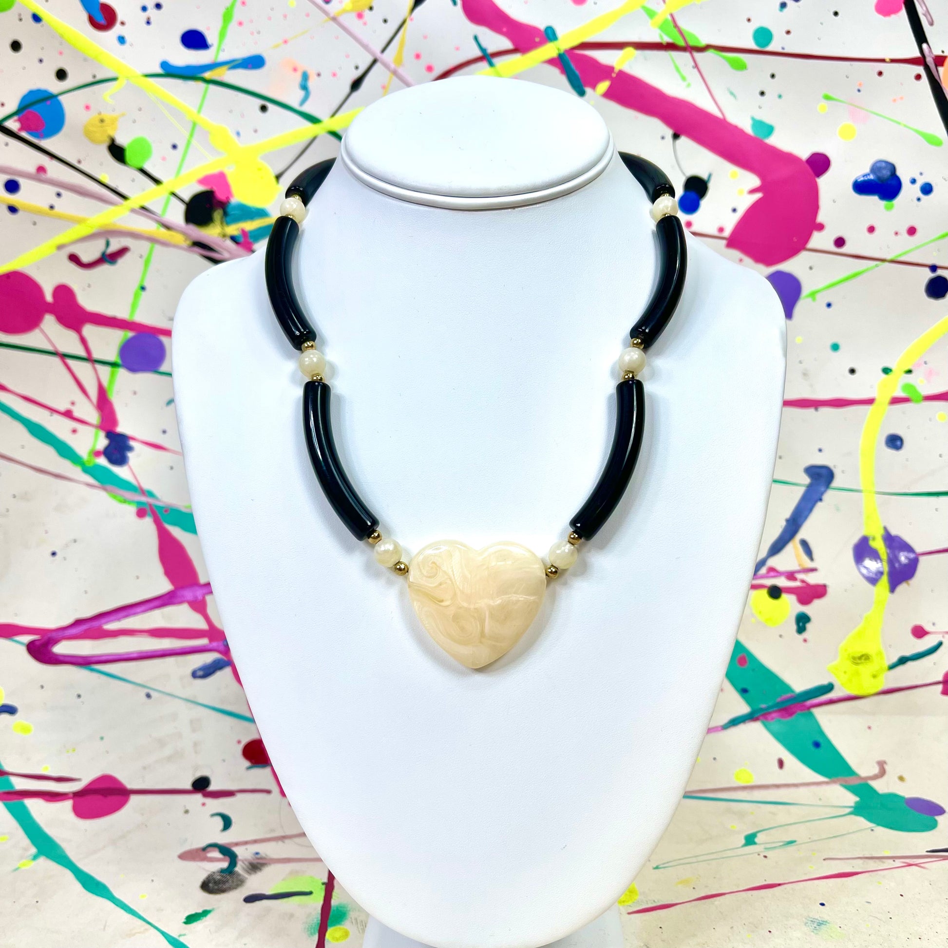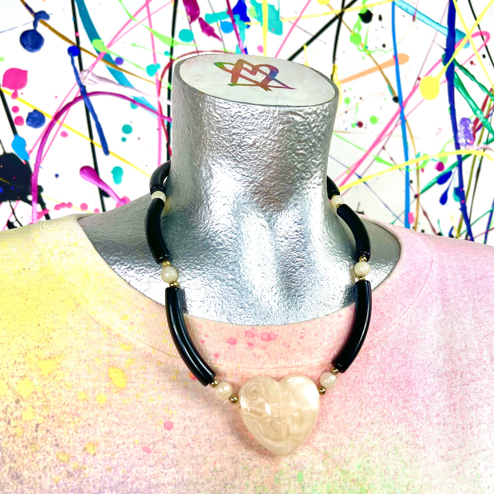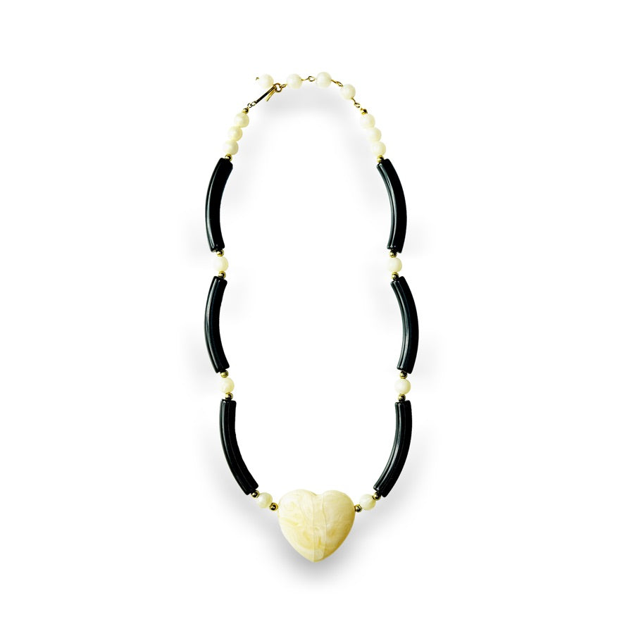 - Vintage statement white and black heart necklace