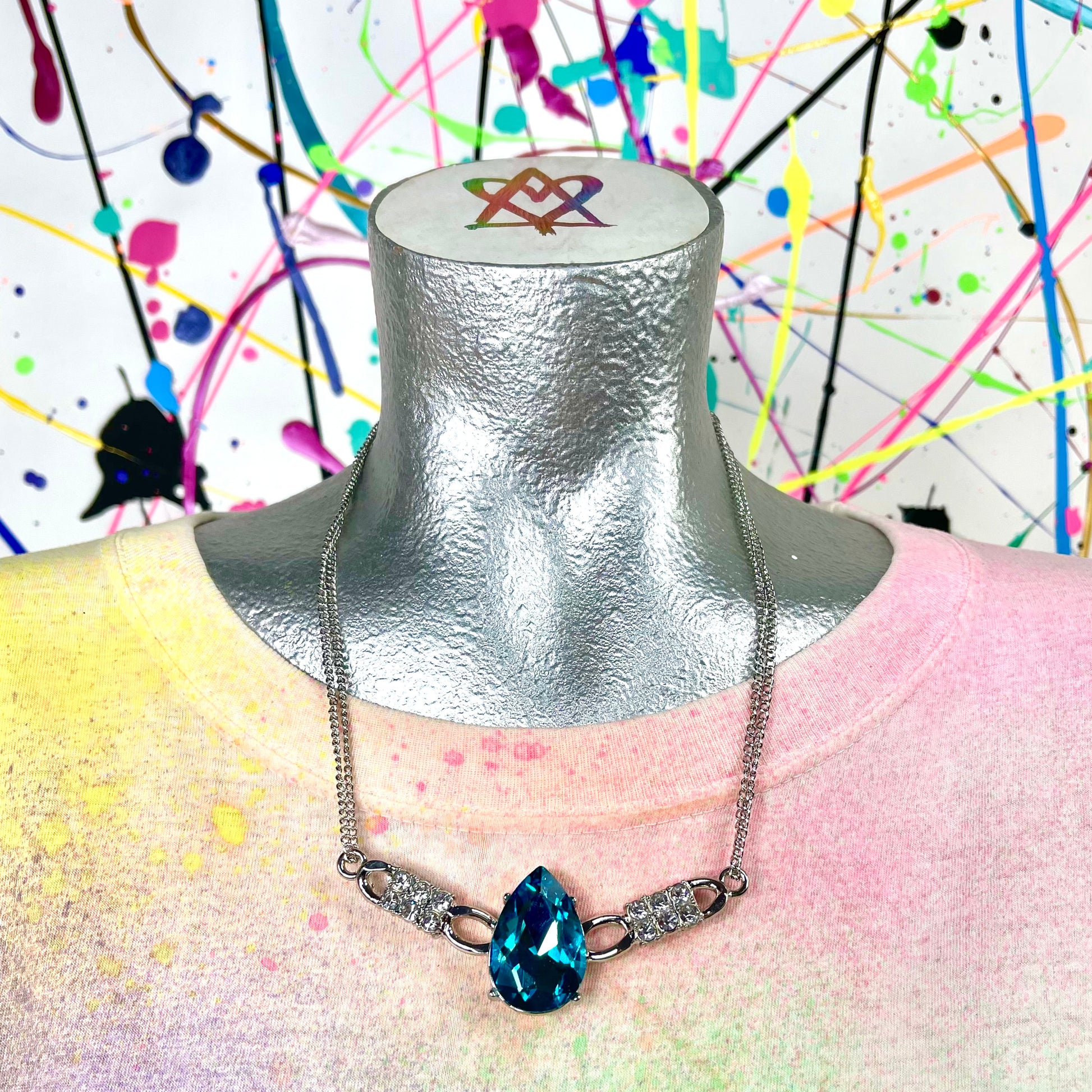 - Materials: silver tone necklace with glass rhinestone