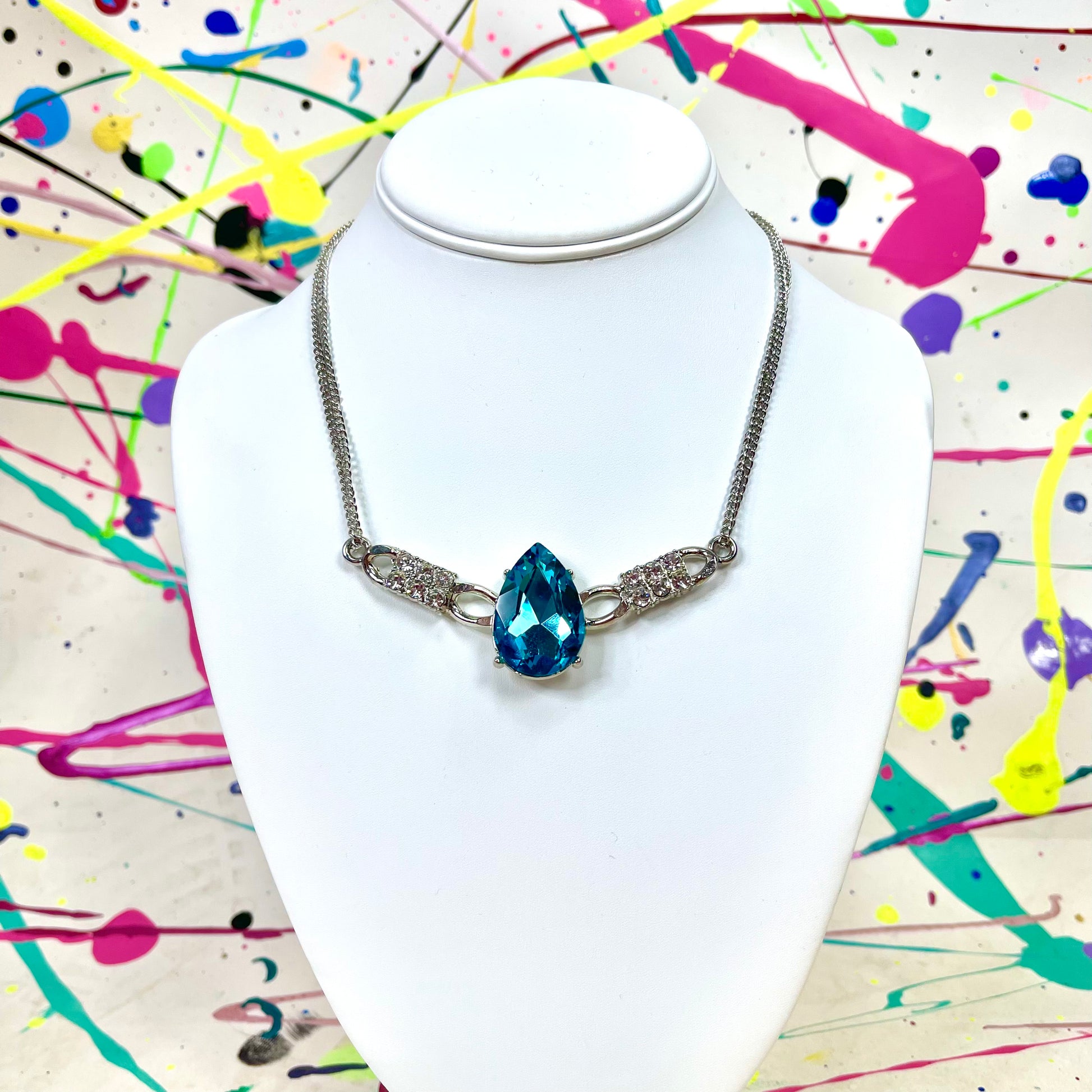 - Blue rhinestone costume necklace