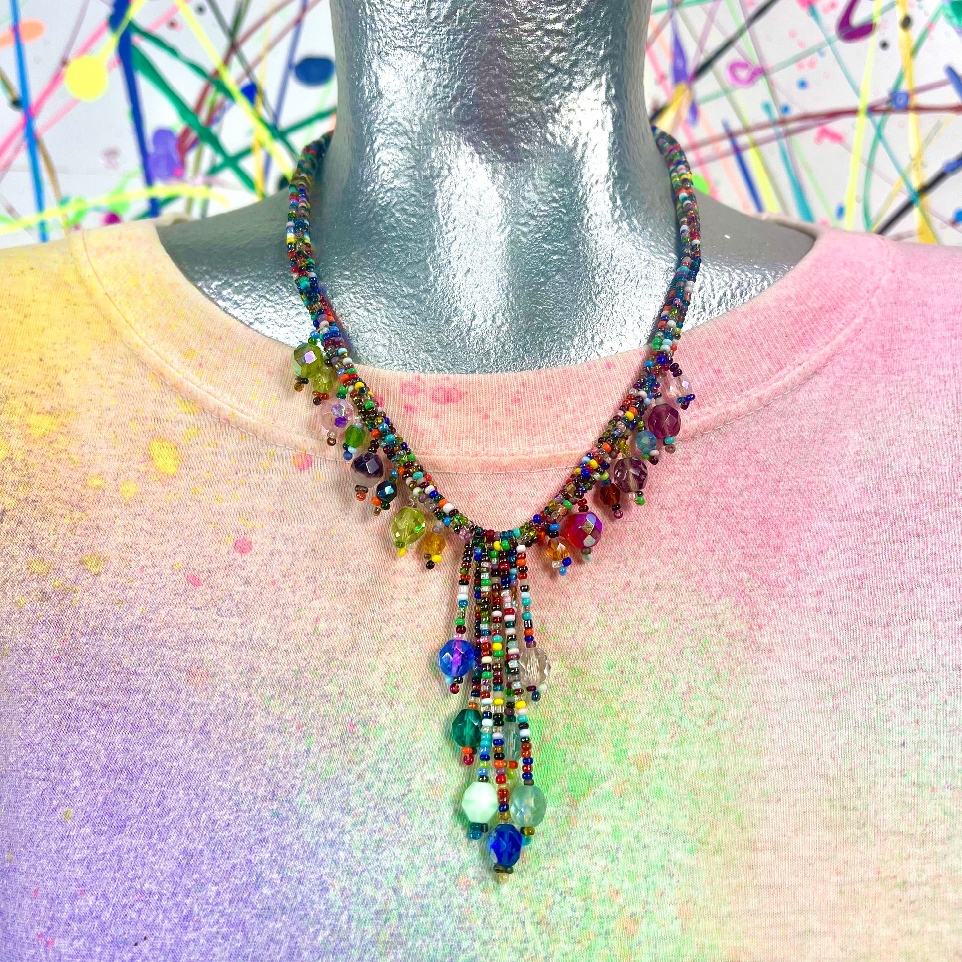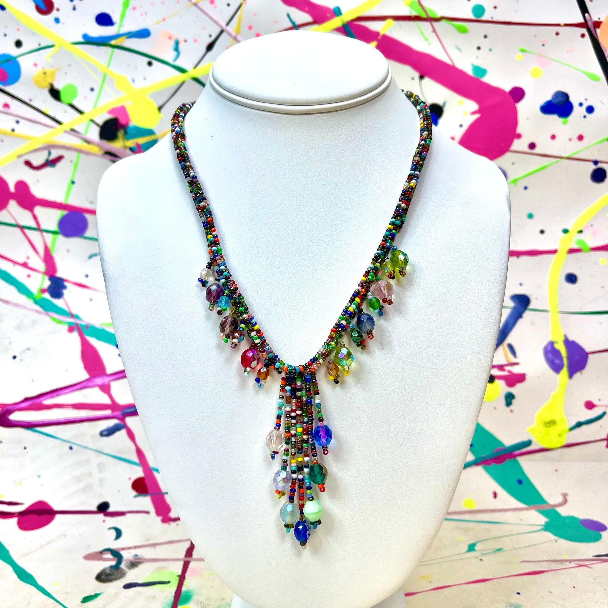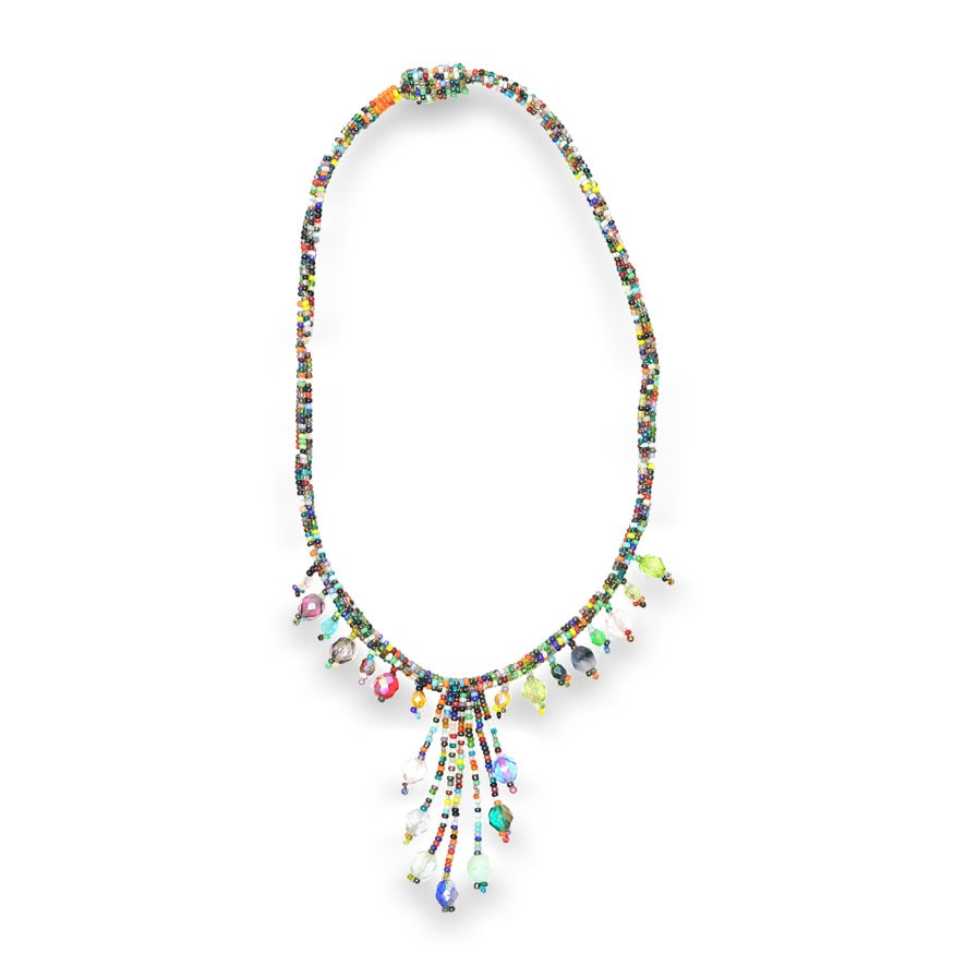 - Materials: multi colored seed beads with crystal beads. Magnetic closure.