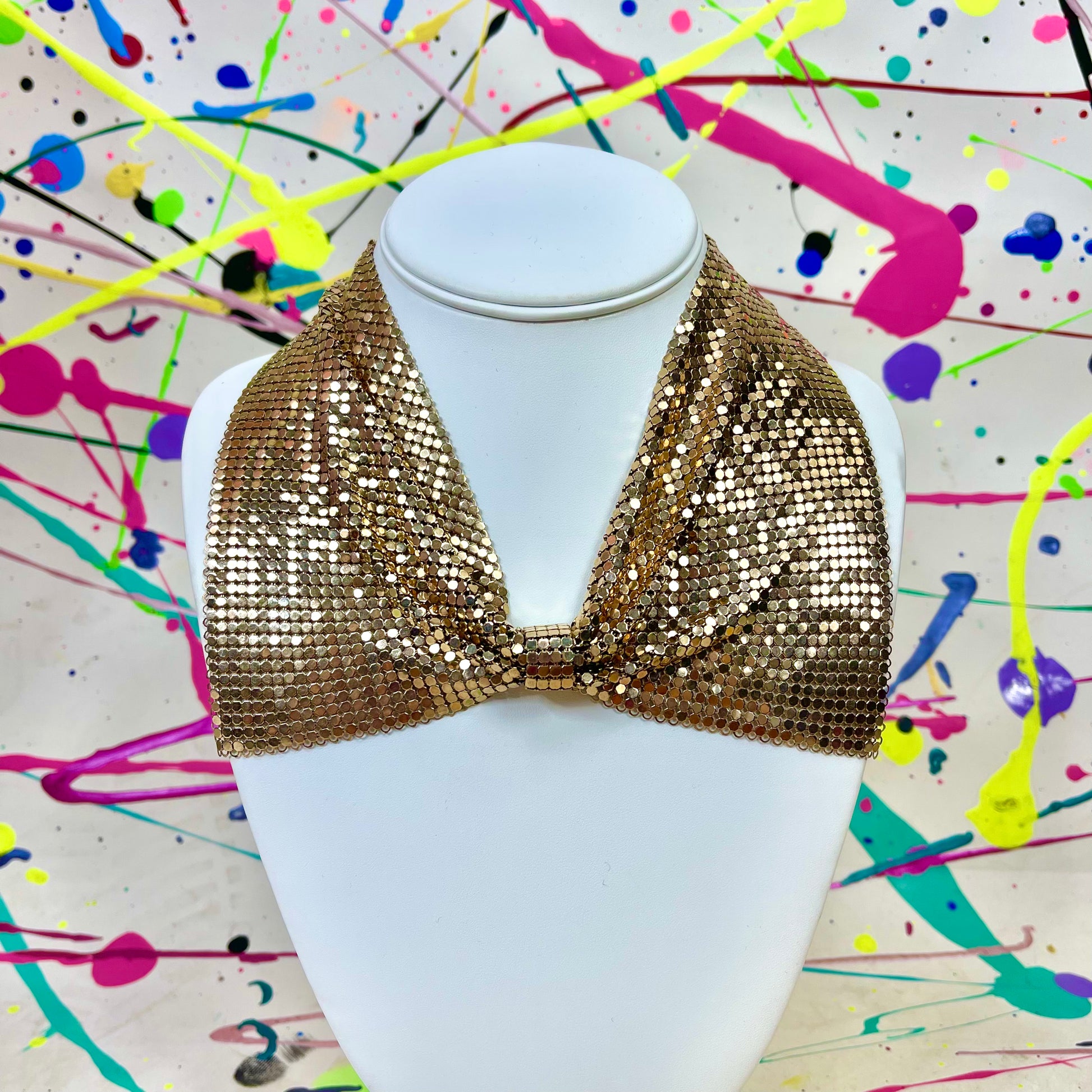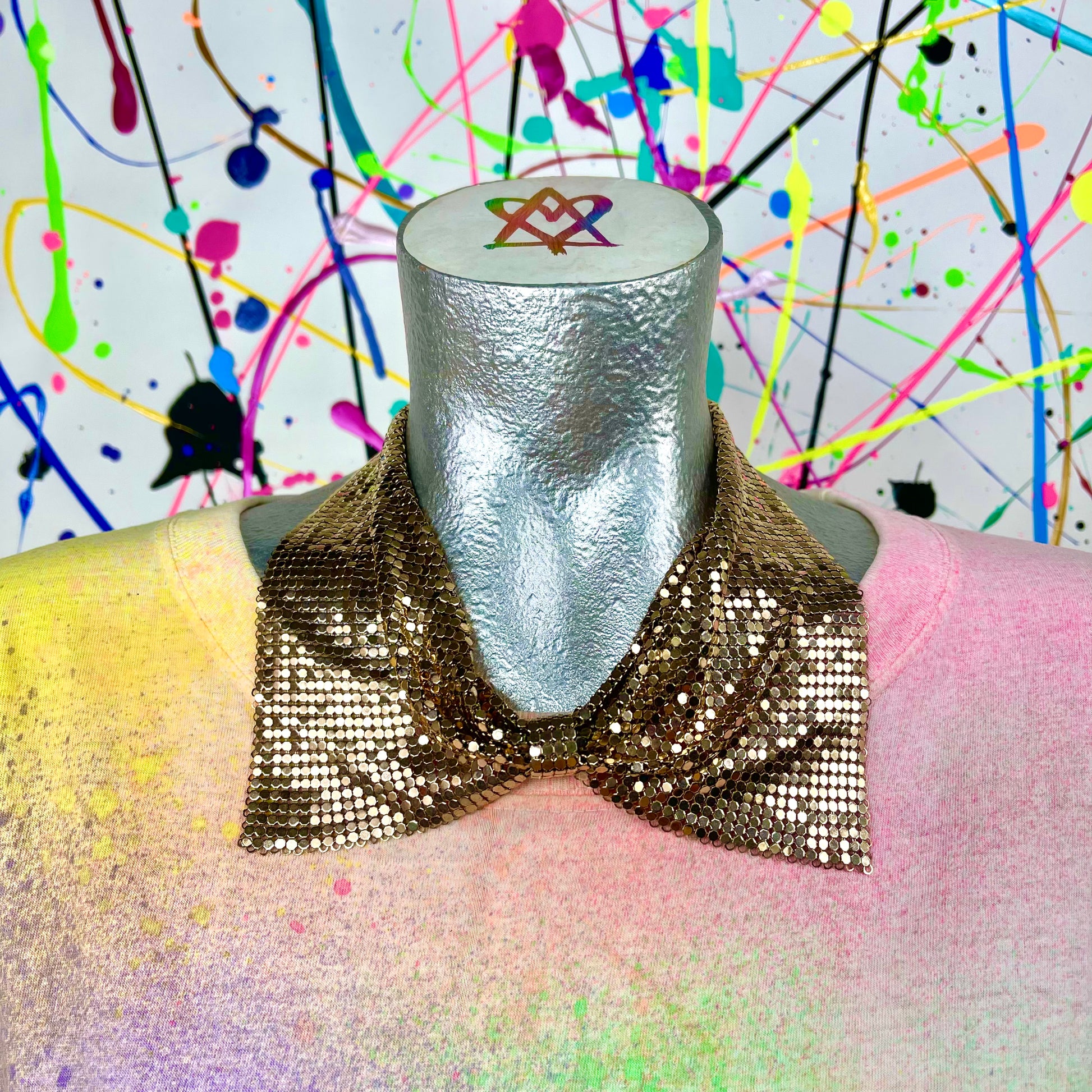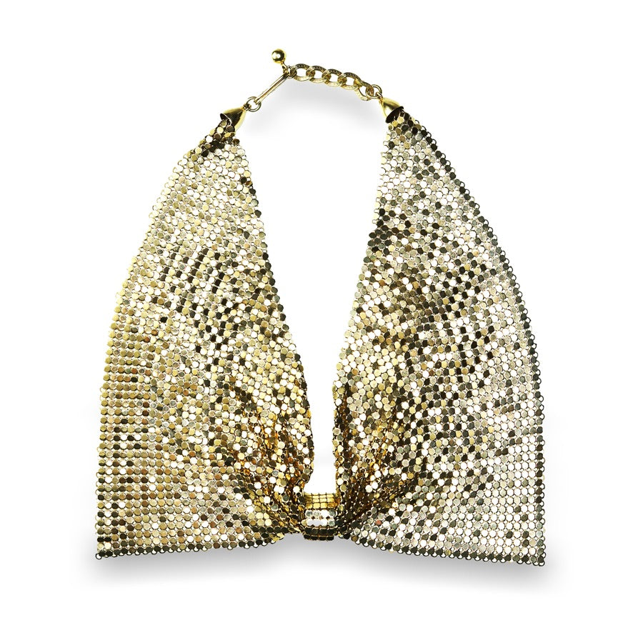 - Vintage gold tone mesh chain bow shaped collar necklace