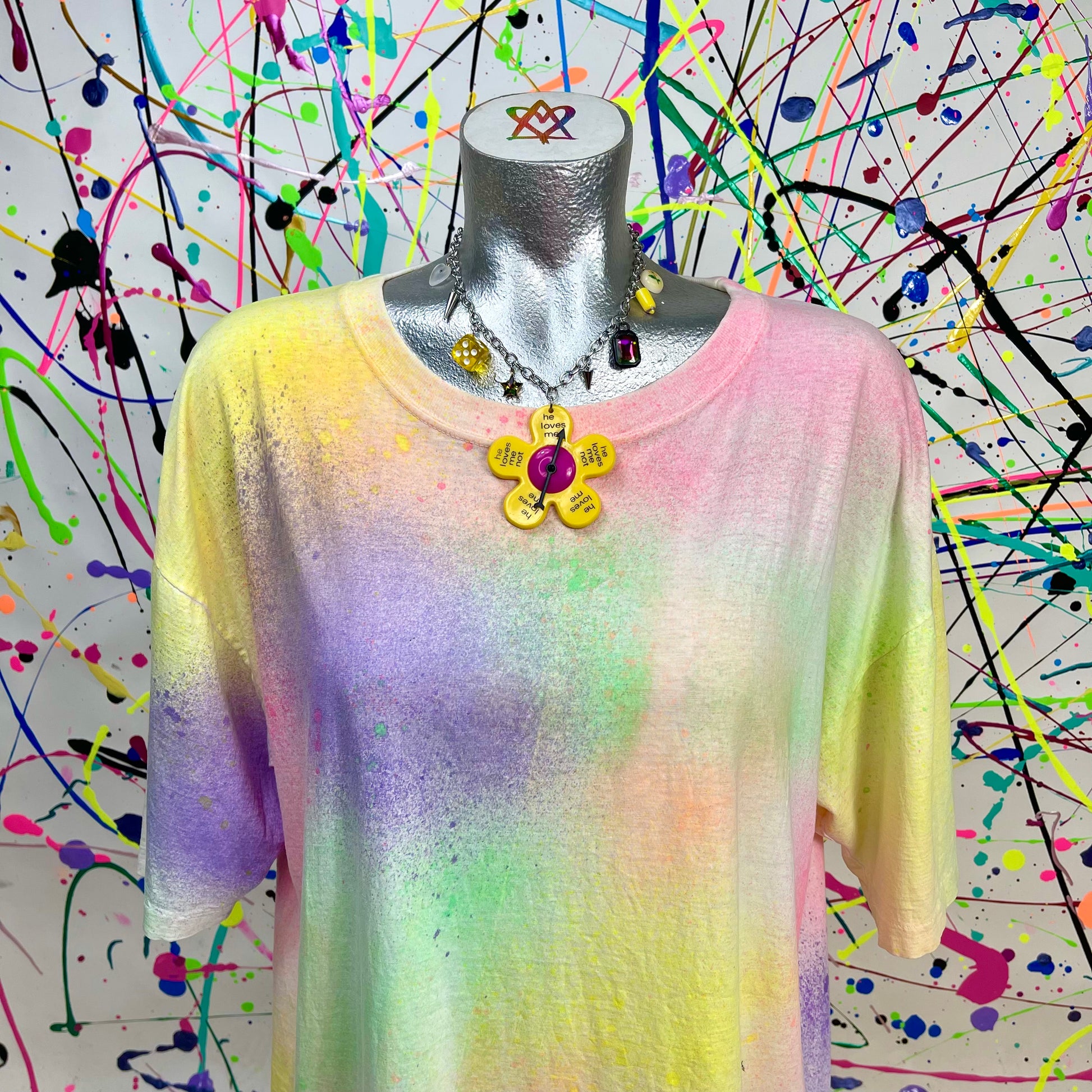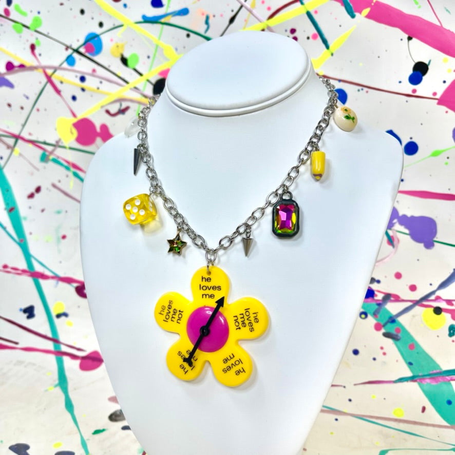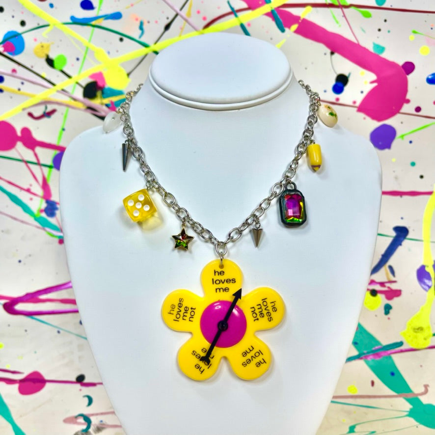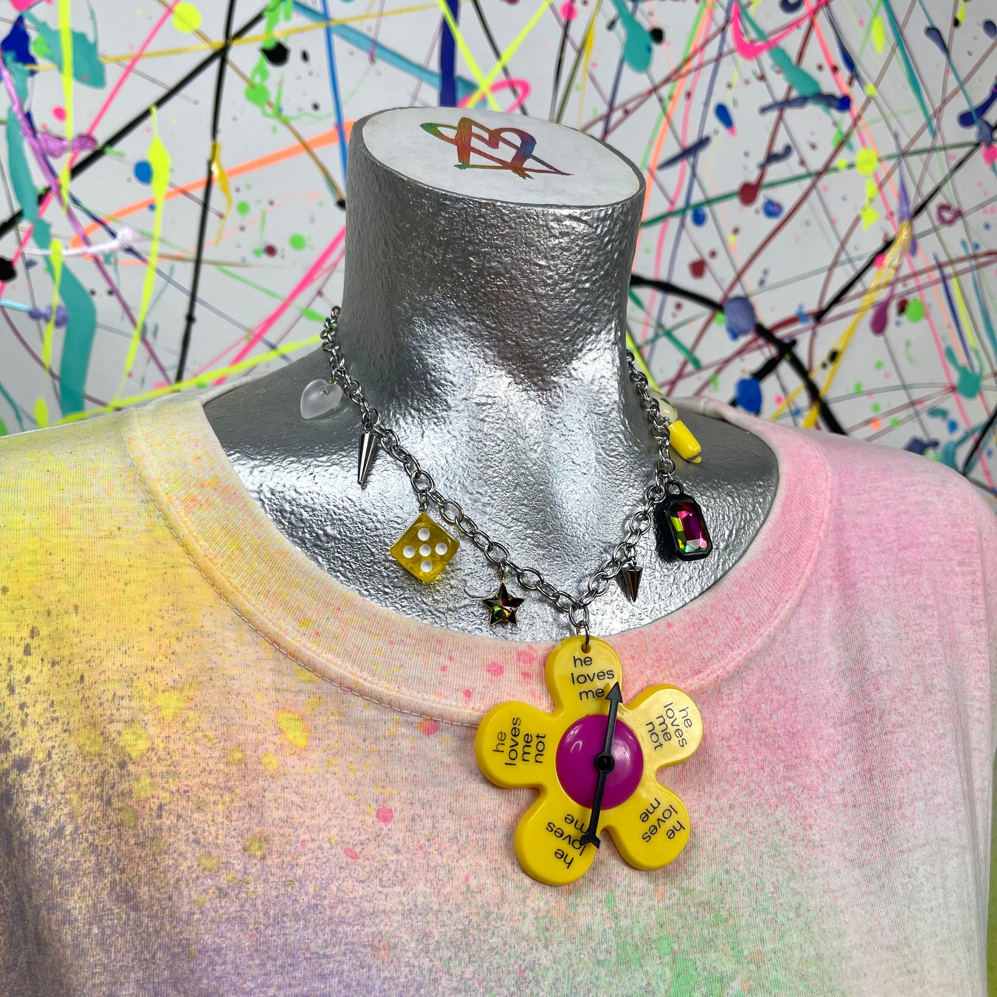 - Stainless steel chain featuring a large epic deadstock 1980's spinner flower with mixed charms. Charms include some vintage, new and stainless steel charms.