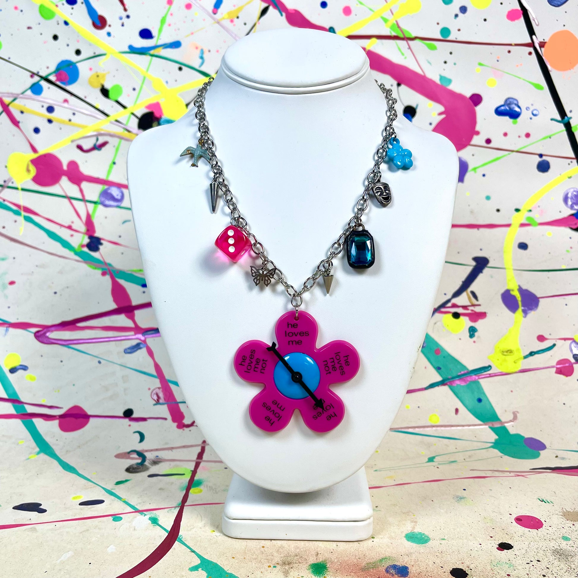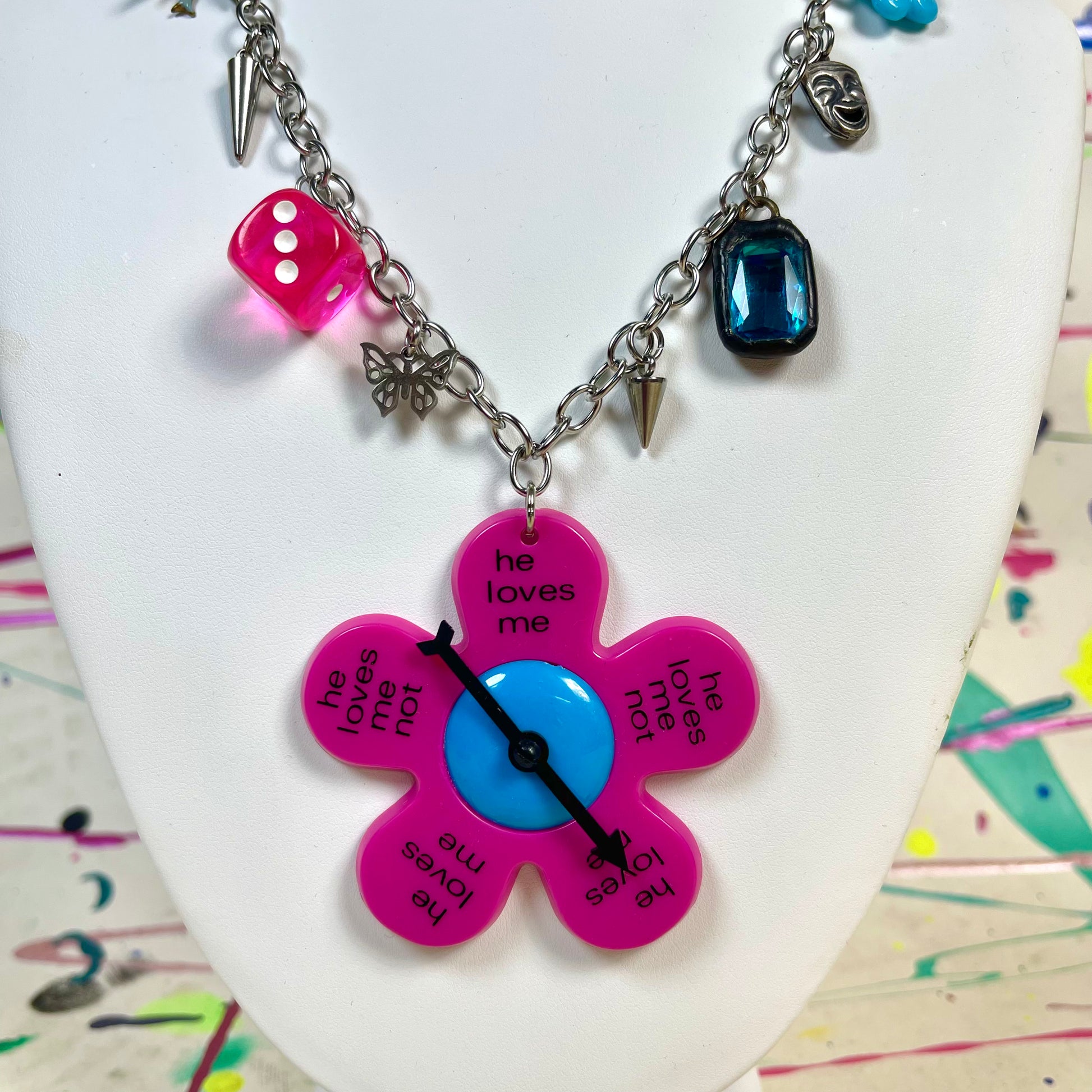 He Loves Me Not Spinner Necklace Pink