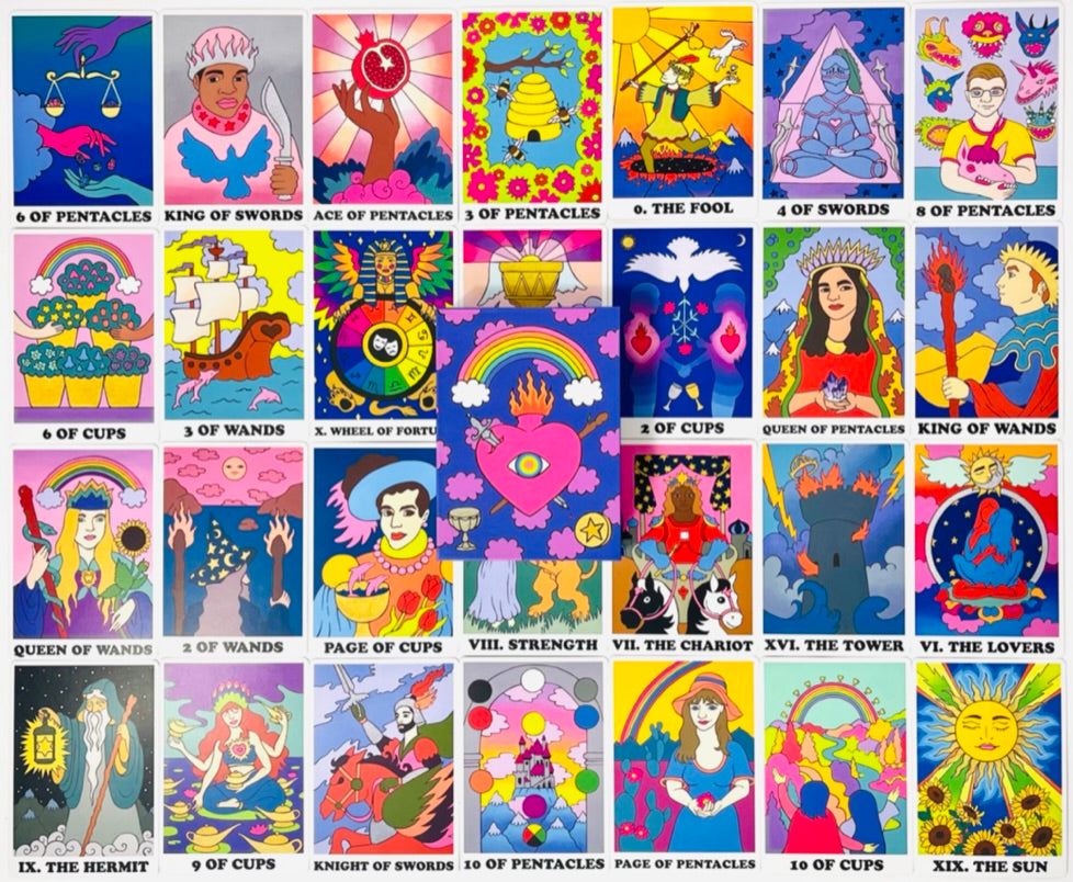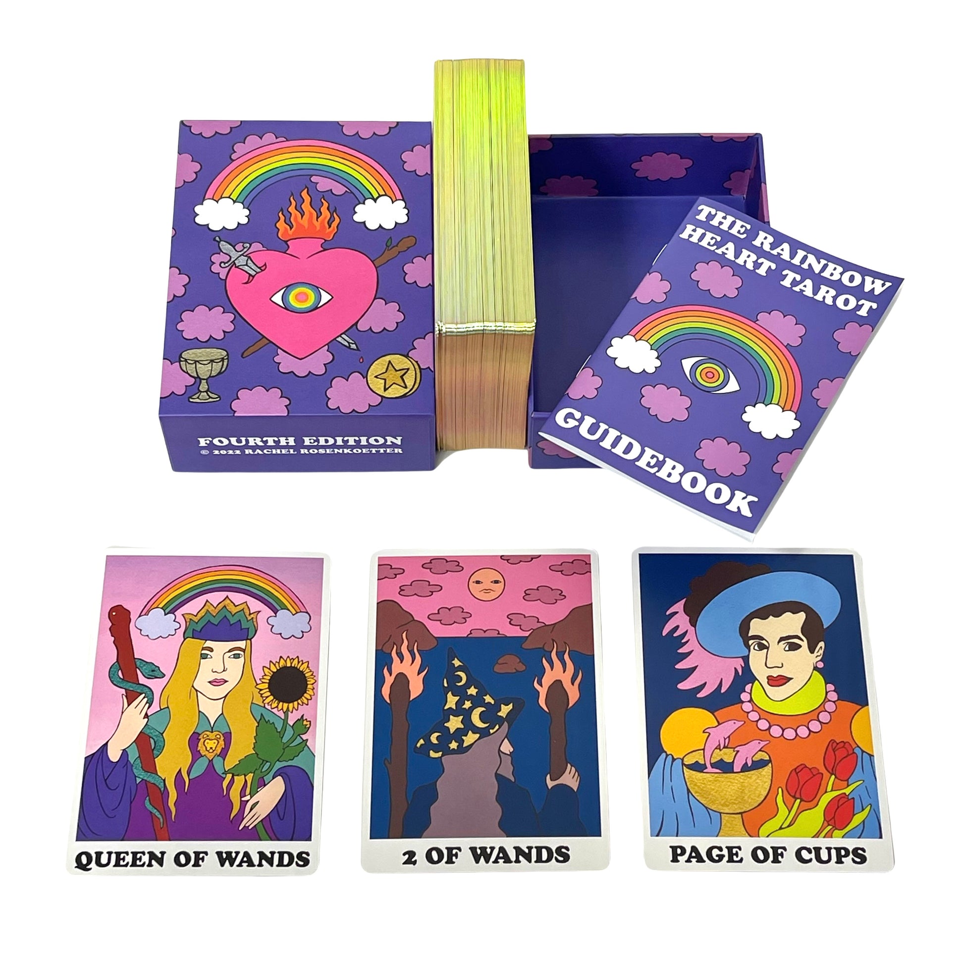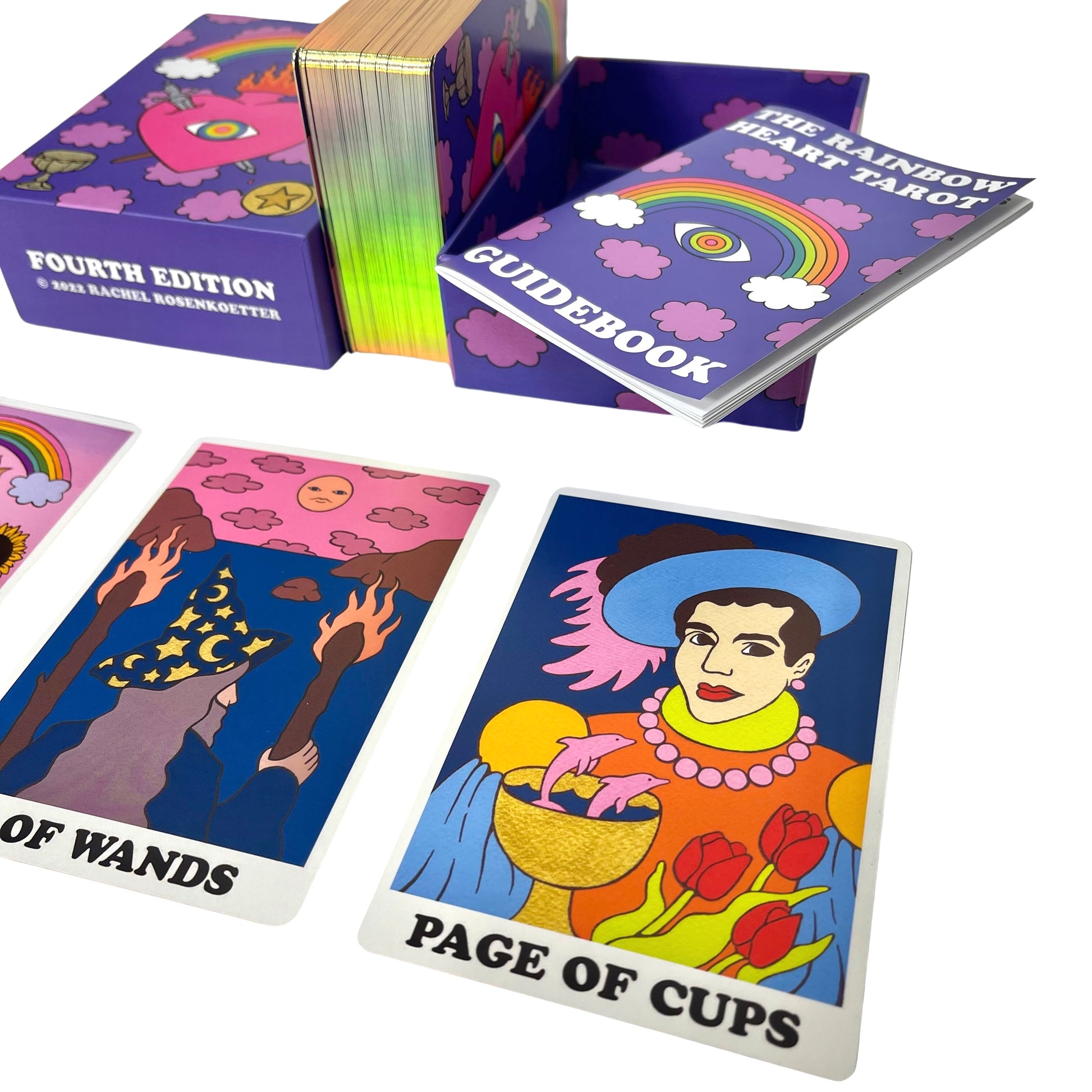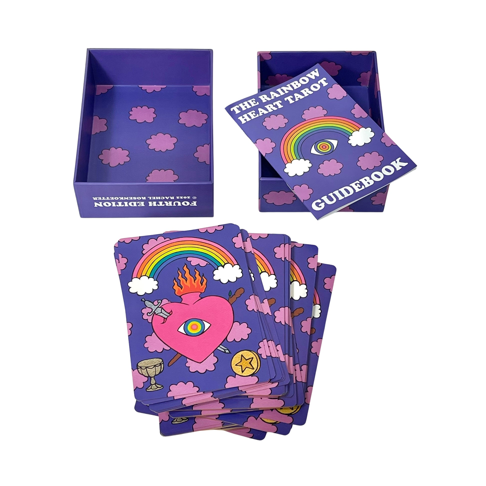 Discover the stunning artwork of Portland artist Rachel Rosenkoetter with the Rainbow Heart Tarot deck. Embrace the magical world of tarot with these unique cards, a must-have for your collection. Order now and bring a wave of color and whimsy to your readings.