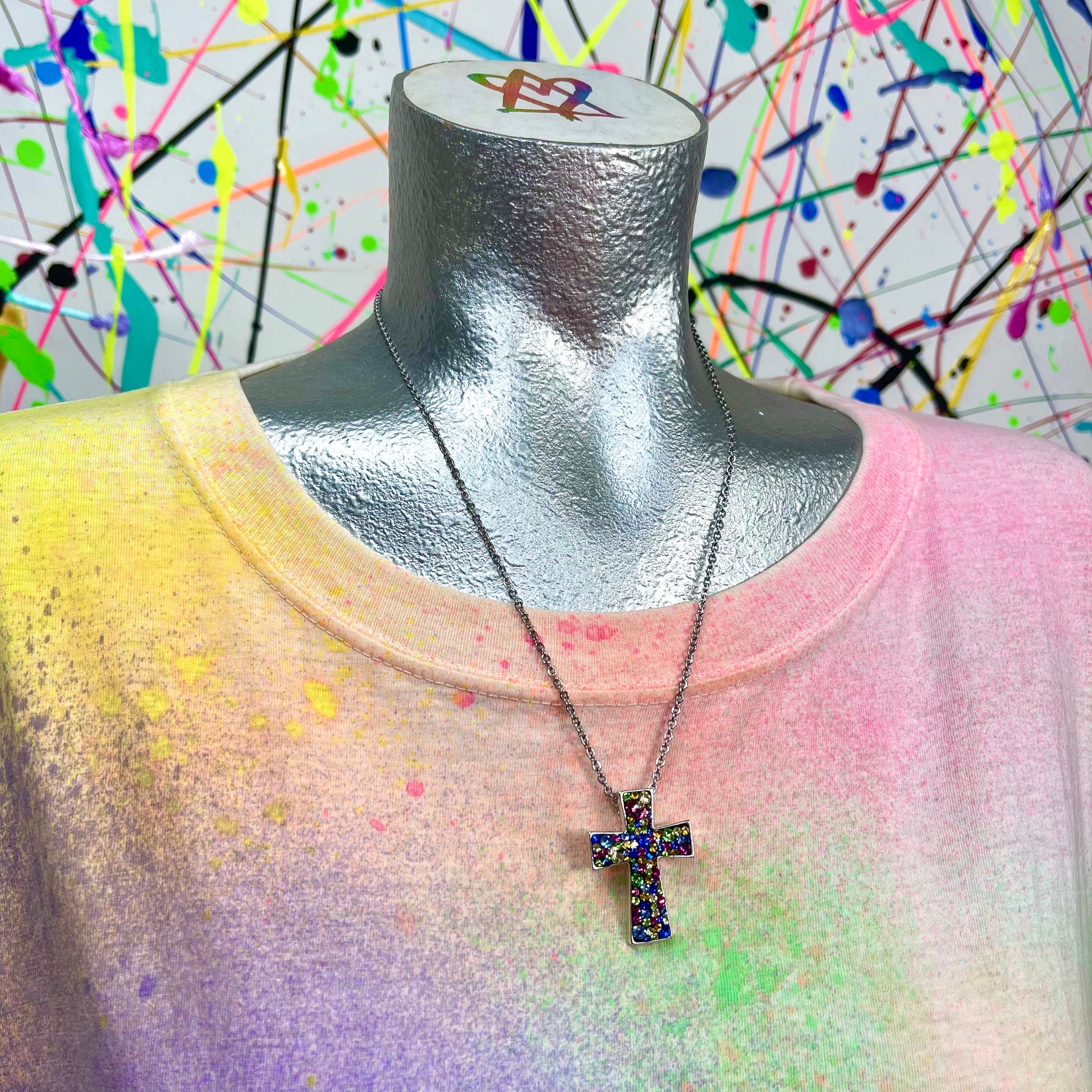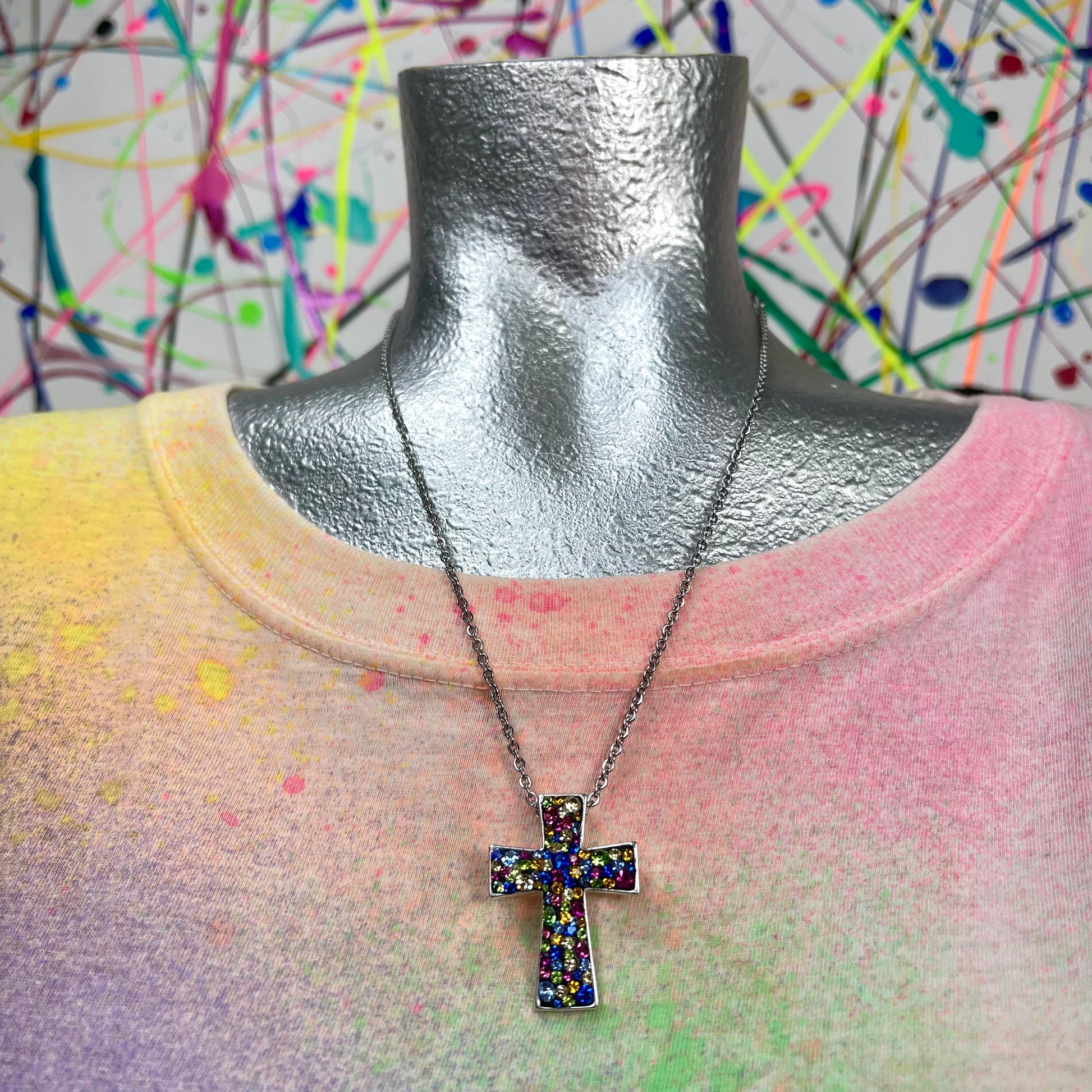 - Stainless steel chain with rhinestone cross marked made in Thailand