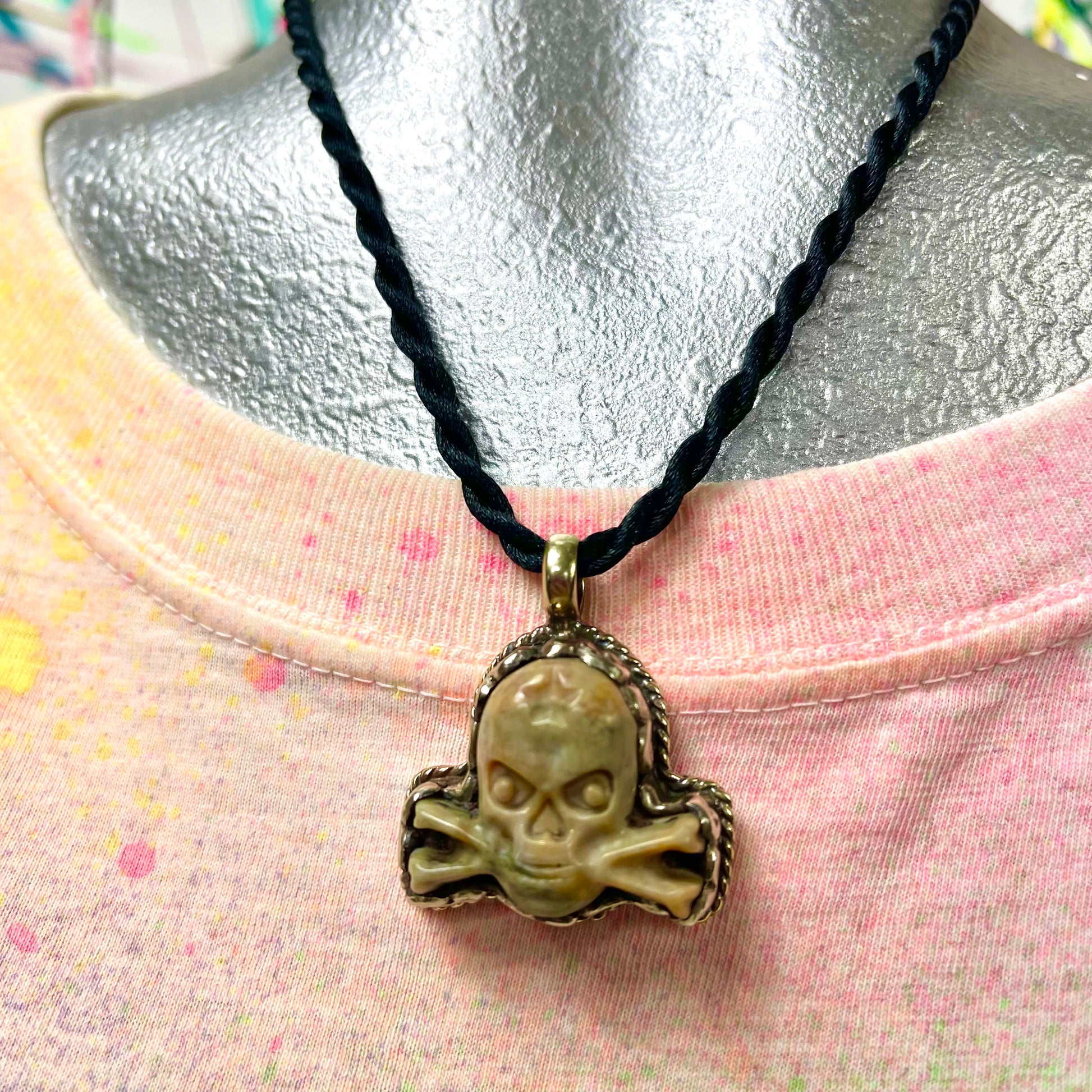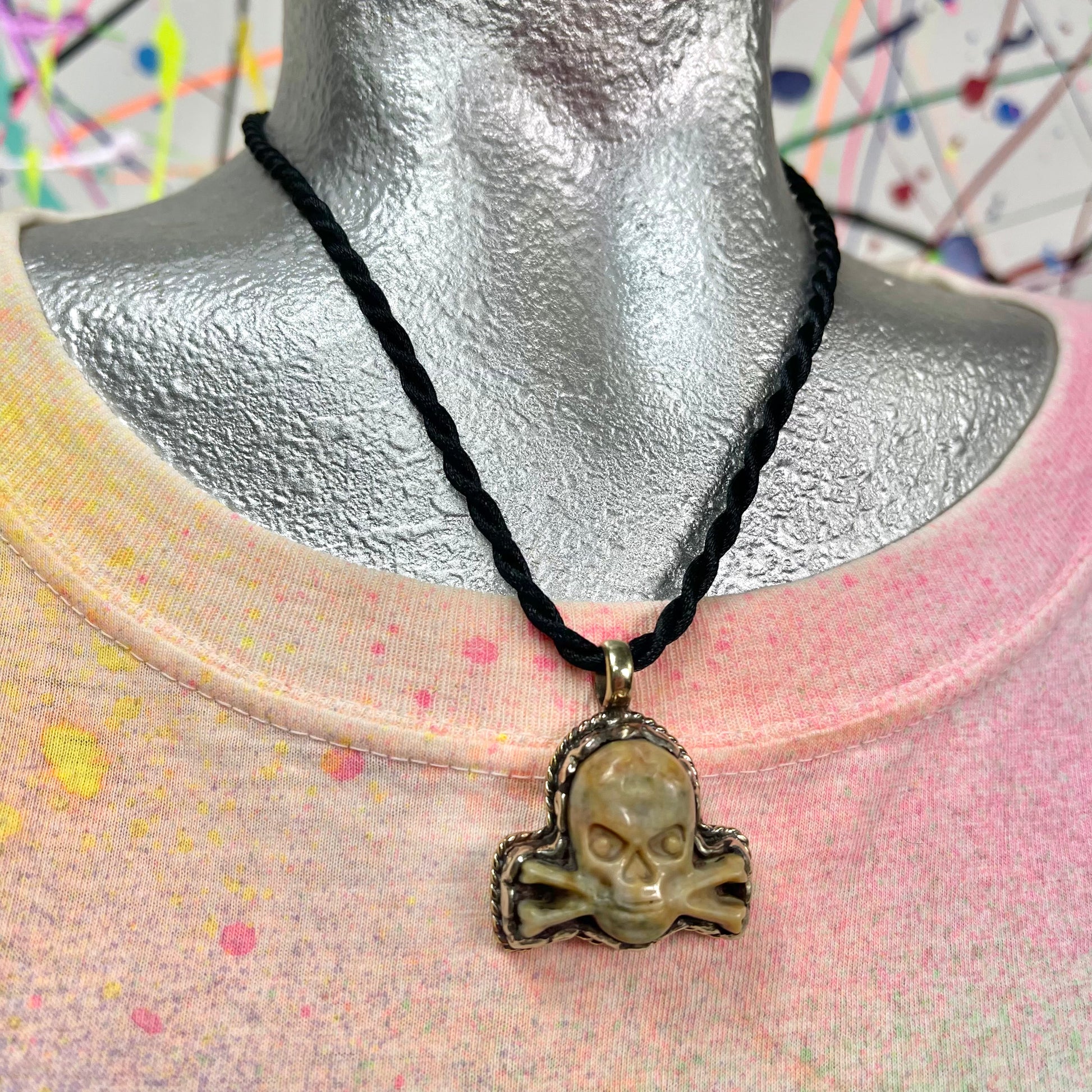 - Cord with stone skull pendant