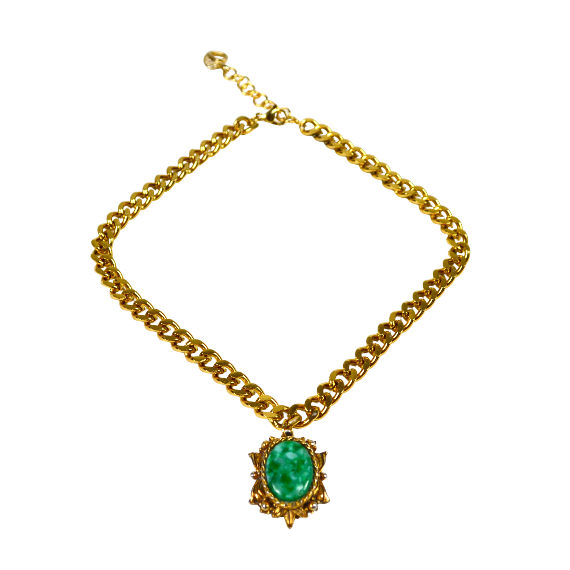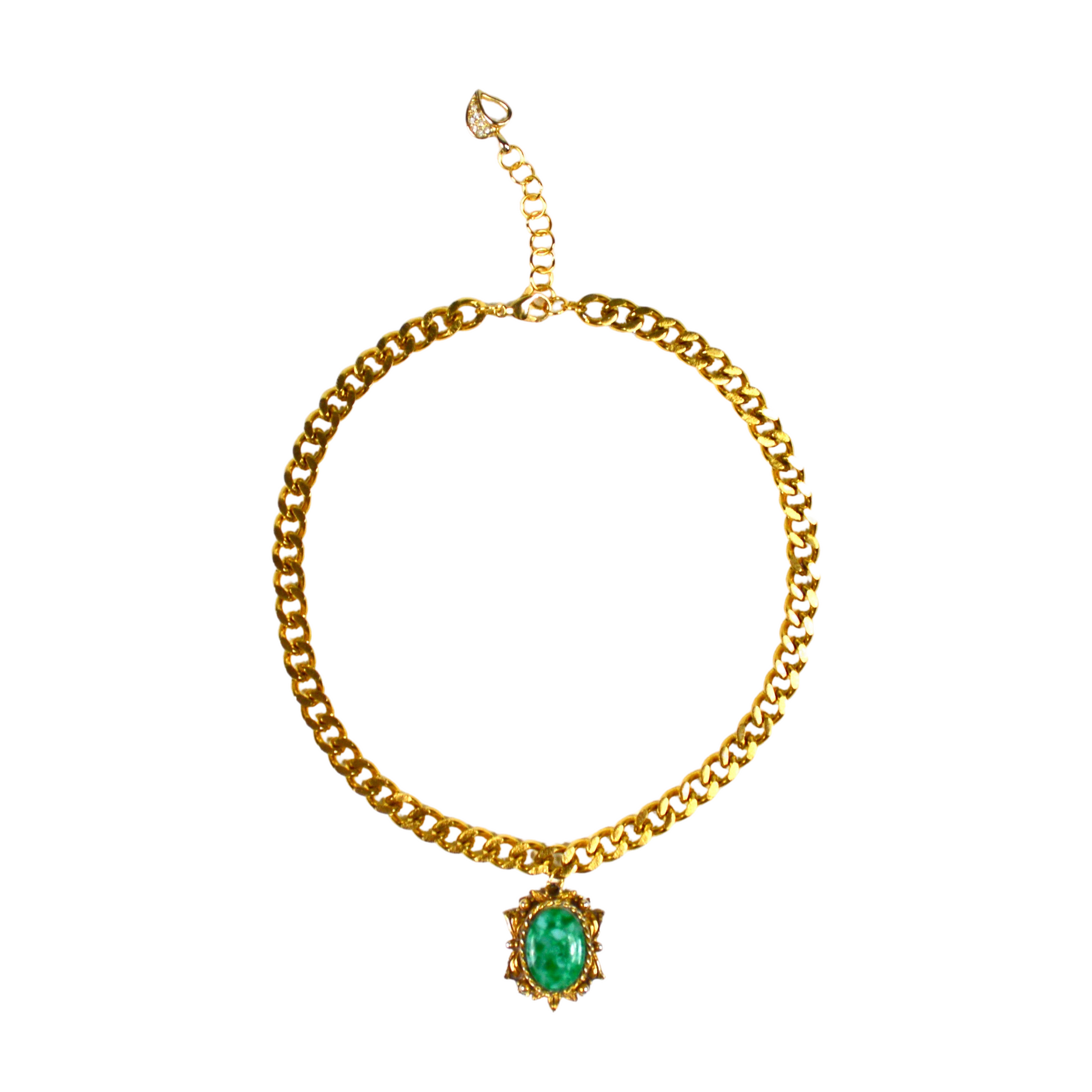 - Gold plated stainless steel choker with vintage turquoise pendant